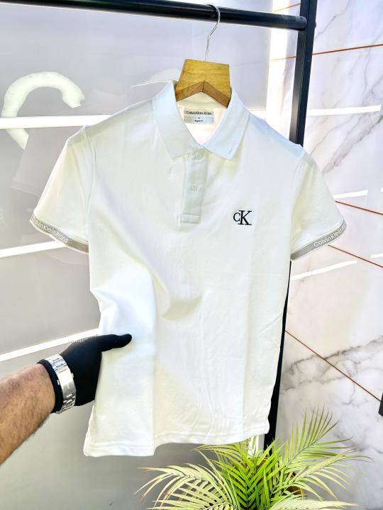 Home T-Shirts Calvin_Klein White Imported Collar Neck Premium Polo T-shirt F2652-WH