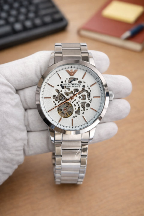 EMPORIO ARMANI MECCANICO 03 AUTOMATIC SILVER WHITE DIAL